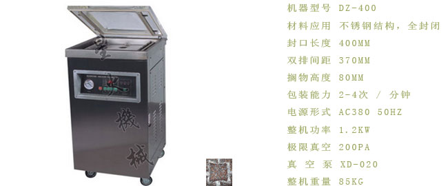 該包裝機(jī)為半自動(dòng)真空設(shè)備,只需按下真空蓋即自動(dòng)按程完成真空、封口、印字、冷卻、排氣的全過(guò)程。適用于各類食品、藥品、瓜子、土特產(chǎn)、雜糧、臘肉、水產(chǎn)品、熟食、咸魚、咸鴨蛋、大米、燒雞、蝦仁、甜玉米、牛肉干、化工原料等各種固體、粉狀、糊狀、液體,電子產(chǎn)品(半導(dǎo)體、電路板、電子成品等)及機(jī)金屬加工件的真空包裝,以防潮、防氧化變色。經(jīng)過(guò)包裝的瓜子或者其它的產(chǎn)品可防止氧化,霉變、蟲蛀、受潮,可保質(zhì)、保鮮延長(zhǎng)產(chǎn)品儲(chǔ)存期限。